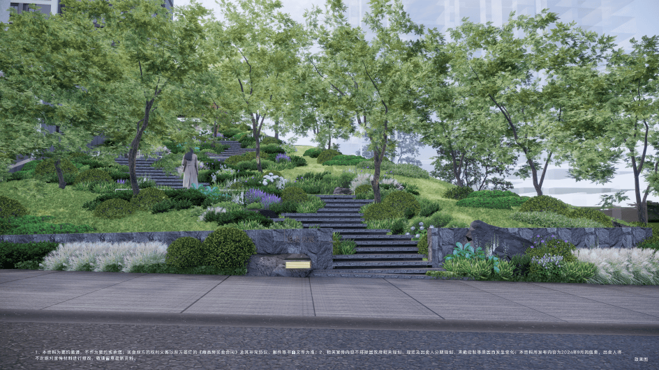 地势高差,细心打制城市罕见的台地式景不雅园林,步步登高,风光相送,建立林间阶梯的天然礼序。