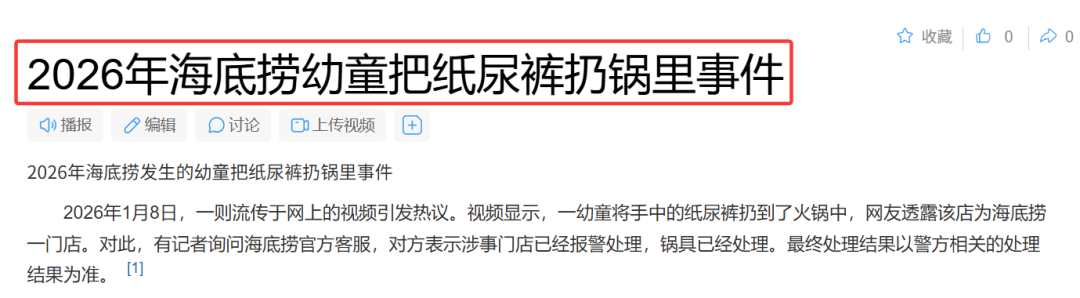 对此,海底捞相关担任人暗示,2025年12月31日,海底捞徐州云龙万达广场店,一桌顾客中的两岁儿童将尿不湿扔至该桌用餐锅具内,门店及时对锅具进行烧毁处置并报警,属地警方已依法对当日正在场监护人做出响应处置。